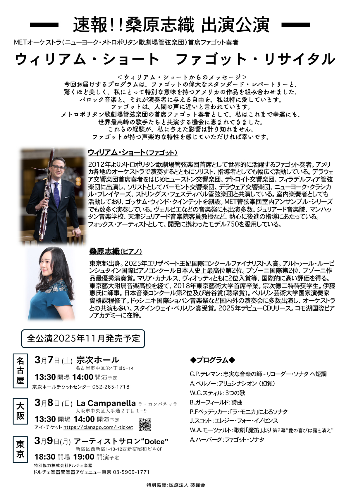 ファゴットが持つ声楽的な特性を感じていただければ幸いです。